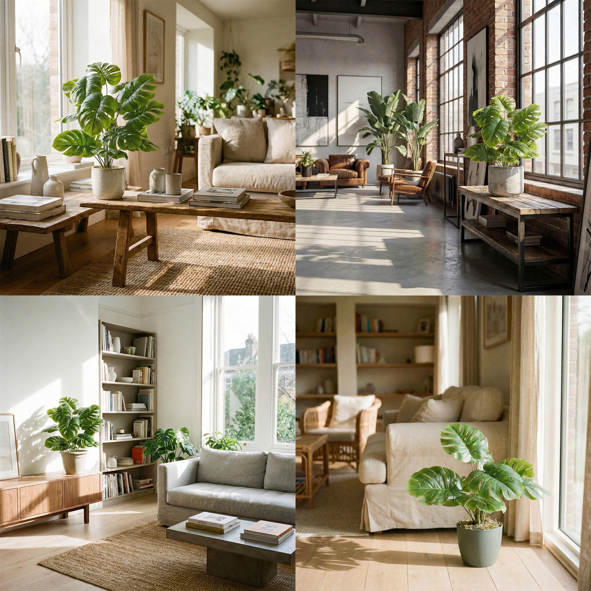 Die exklusive Kunstpflanze Monstera fügt sich harmonisch in moderne, Loft-, Boho-, Urban-Jungle- und skandinavische Räume ein. Sie macht sich ideal im Wohnzimmer, Schlafzimmer, Arbeitszimmer, Home-Office, Empfangsbereich, Geschäft oder Café und verleiht der Umgebung eine leichte, frische Atmosphäre. In modernen Interiors kommt sie besonders gut zur Geltung, wenn sie von Keramik- oder Beton-Dekorationen umgeben ist.