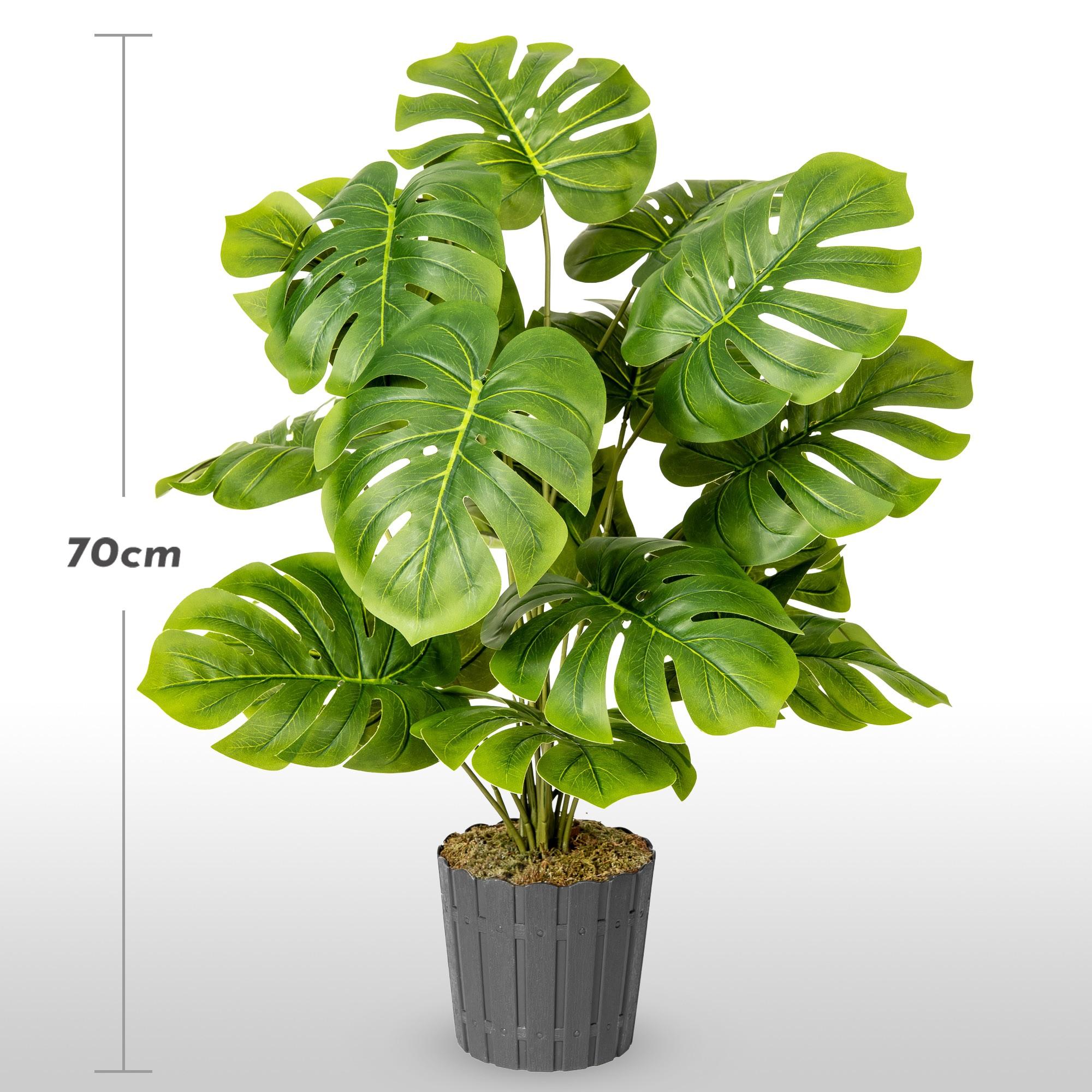 FairyTrees Künstliche Monstera 70 cm Real Touch - 18 Blätter - grün - mit realistischer Struktur